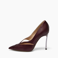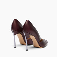 A must-have model for this Fall/Winter 25 season is the Blade Pantera. With an elegant and refined silhouette, on the iconic steel Blade heel and presented in black cherry patent leather, this decollete is distinguished by the cuts of the leather: small slits that recall the eyes of the panther. A symbol of seduction and strength of women, this model will not be missed in your wardrobe! Details - Patent leather with soft metallic finish to highlight the colour and brilliance - 100% Calf - Blade heel in stainless steel 100 mm / 3.9 inches - 100% Made In Italy - Code: 1F010A100MC28344408