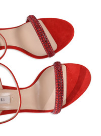 100mm Blade Stratosphere sandals Highlights - Red - Leather - Suede - Buckle-fastening ankle strap - Crystal embellishment - Crossover strap detail - Almond open toe - 100mm high stiletto heel - Single toe strap - Branded footbed - Leather sole Made in Italy Composition Silk 100% SIZE & FIT Measurement HEEL 3.93 in(10 cm)
