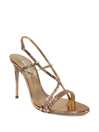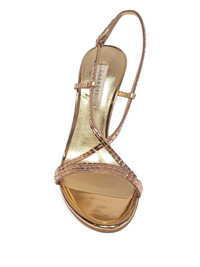 100mm crystal-embellished slingback sandals Highlights - Gold - Stiletto heel - Slingback strap - Ankle buckle fastening - Crystal embellishment - Criss-cross straps Made in Italy Composition Sole: Calf Leather 100% Outer: Polyurethane 60%, Polyester 40% Lining: Calf Leather 100% SIZE & FIT Measurement HEEL 3.93 in(10 cm)