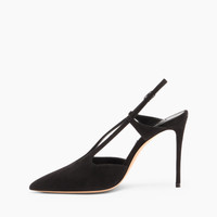 Timeless elegance takes shape in the black suede slingback, a masterpiece of refinement and subtle sensuality. The soft suede gently embraces the foot with unique delicacy, while the minimalist silhouette and open heel exude an enduring allure. The 10 cm stiletto heel elongates the figure with grace, adding a touch of bold sophistication. A model that combines elegance and comfort, perfect for those seeking a touch of class for any occasion. Details - Suede - 100% kid - Leather covered heel 100 mm / 3.9 inches - 100% Made In Italy - Code: 1H034A1001CAMOS9000