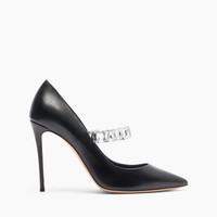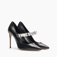 For women who do not want to give up a maximalist touch, Casadei presents an elegant black leather decollete, embellished with a maxi elastic bracelet of crystals, which fits perfectly around the instep. Ideal for those who want to face the day with style and class, this pump, on a sharp 10 cm stiletto heel, expresses a bold and sophisticated elegance. Details - Nappa leather and Strass - 100% kid - Leather covered heel 100 mm / 3.9 inches - 100% Made In Italy - Code: 1F009A1001C28329000