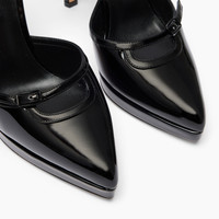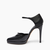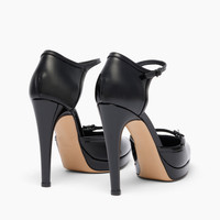 With a slightly walled pointed toe shape, this black patent leather pump that features a 2 cm platform and a thin but not too thin heel is a symbol of freedom and strength for all women. The special feature of this model are the leather cuts and details, which can create a game of transparency and seduction. Details - Patent leather - 100% Calf - Patent leather covered heel 100 mm / 3.9 inches with plateau 20 mm / 0.7 inches - 100% Made In Italy - Code: 1H036A1001TIFFA9000