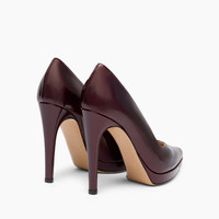 With a slightly walled pointed toe shape, this pump features a 2-cm platform and a thin but not too thin heel, it is a symbol of freedom and strength for all women. The special feature is the samurai material, a black cherry-colored patent leather that features a delicate metallization that can enhance the colors and shine of the model. Details - Patent leather with soft metallic finish to highlight the colour and brilliance - 100% Calf - Patent leather covered heel 100 mm / 3.9 inches with plateau 20 mm / 0.7 inches - 100% Made In Italy - Code: 1F013A1001SAMUR4408