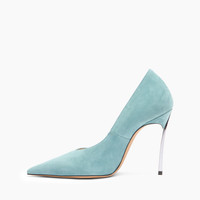 Elegant and sophisticated, the troll blue suede Superblade is an iconic piece for any refined wardrobe. Crafted on the iconic 10cm steel blade heel, this shoe is distinguished by its more elongated and pointed silhouette, enhanced by soft, flowing waves, creating a dynamic and contemporary visual effect. Carefully designed ripples embrace the profile of the shoe, giving movement and a feeling of lightness, without ever sacrificing class. A design that combines sophistication and modernity, ideal for those seeking elegance with a touch of originality. Details - Suede - 100% Kid - Blade heel in stainless steel 100 mm / 3.9 inches - 100% Made In Italy - Code: 1F023A100MCAMOS5807