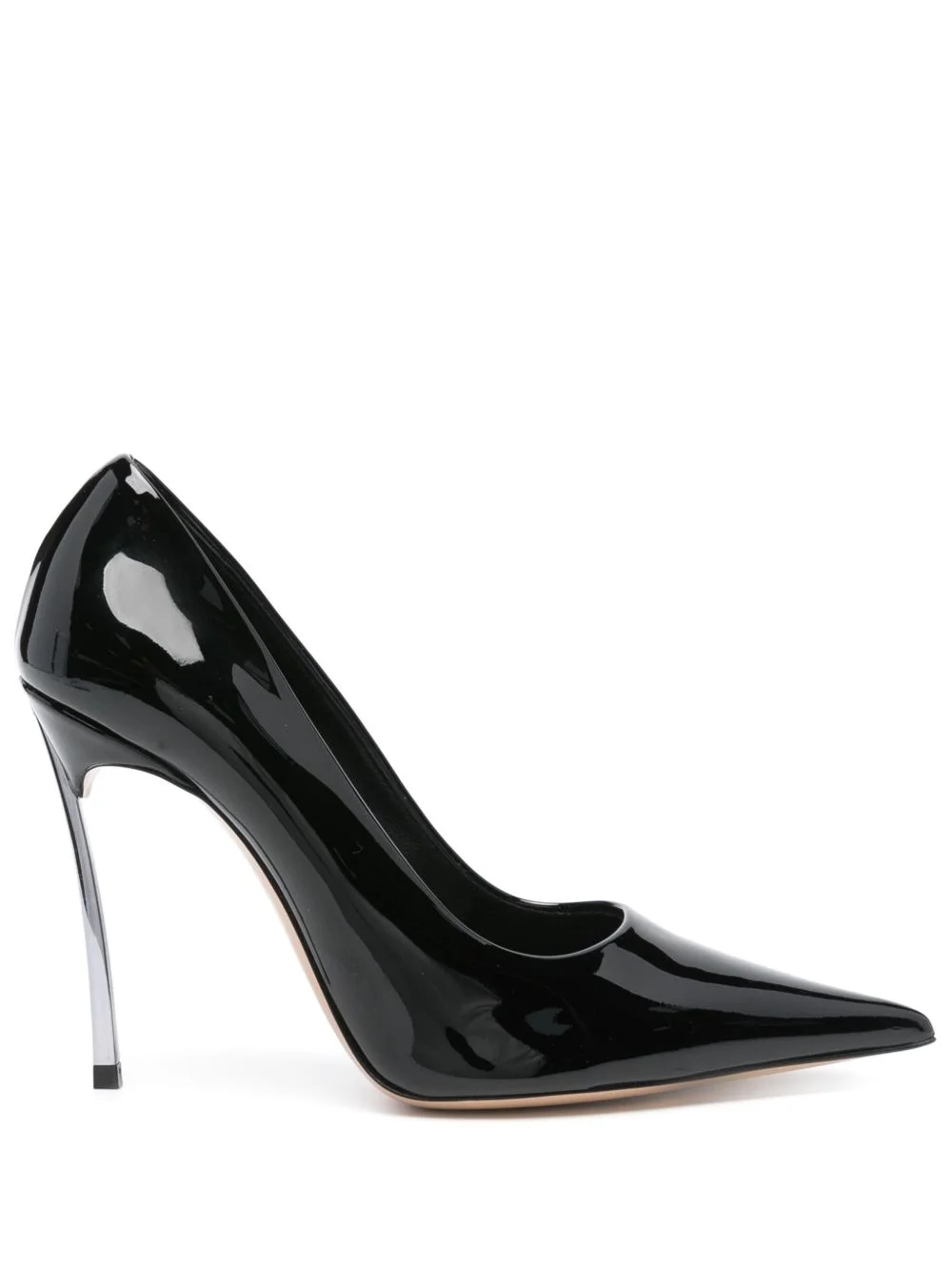 100mm Superblade pumps Highlights - Black - Calf leather - Patent finish - Pointed toe - Branded leather insole - Leather lining - 100mm stiletto heel - Leather sole - Slip-on style Made in Italy Composition Outer: Patent Calf Leather 100% Sole: Calf Leather 100% Lining: Calf Leather 100% SIZE & FIT Measurement HEEL 3.74 in(9.5 cm)