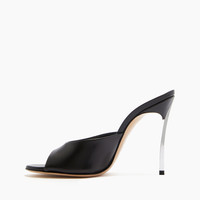 Casadei presents the It shoe of the season, defined by its purity of form. This black leather mule, featuring the iconic steel Blade heel, is the perfect summer accessory and a must in every woman's wardrobe. Details - Calfskin - 100% Kid Leather - Blade Heel In Real Steel 100 Mm / 3.9 Inches - 100% Made In Italy - Code: 1M889V100MC11559000