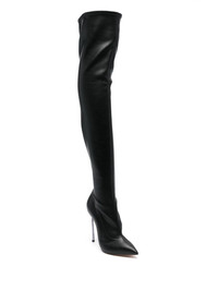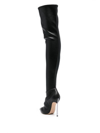 120mm Blade boots Highlights - Black - Calf leather - Smooth grain - Pointed toe - Thigh-length - Branded insole - Full lining - High stiletto heel - Leather sole - Pull-on style Made in Italy Composition Lining: Polyurethane 100%, Calf Leather 100% Outer: Polyurethane 100% Sole: Calf Leather 100%, Rubber 100% SIZE & FIT Measurement CIRCUMFERENCE 16.92 in(43 cm) HEEL 5.11 in(13 cm) HEIGHT 24.8 in(63 cm)