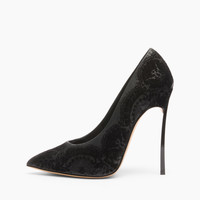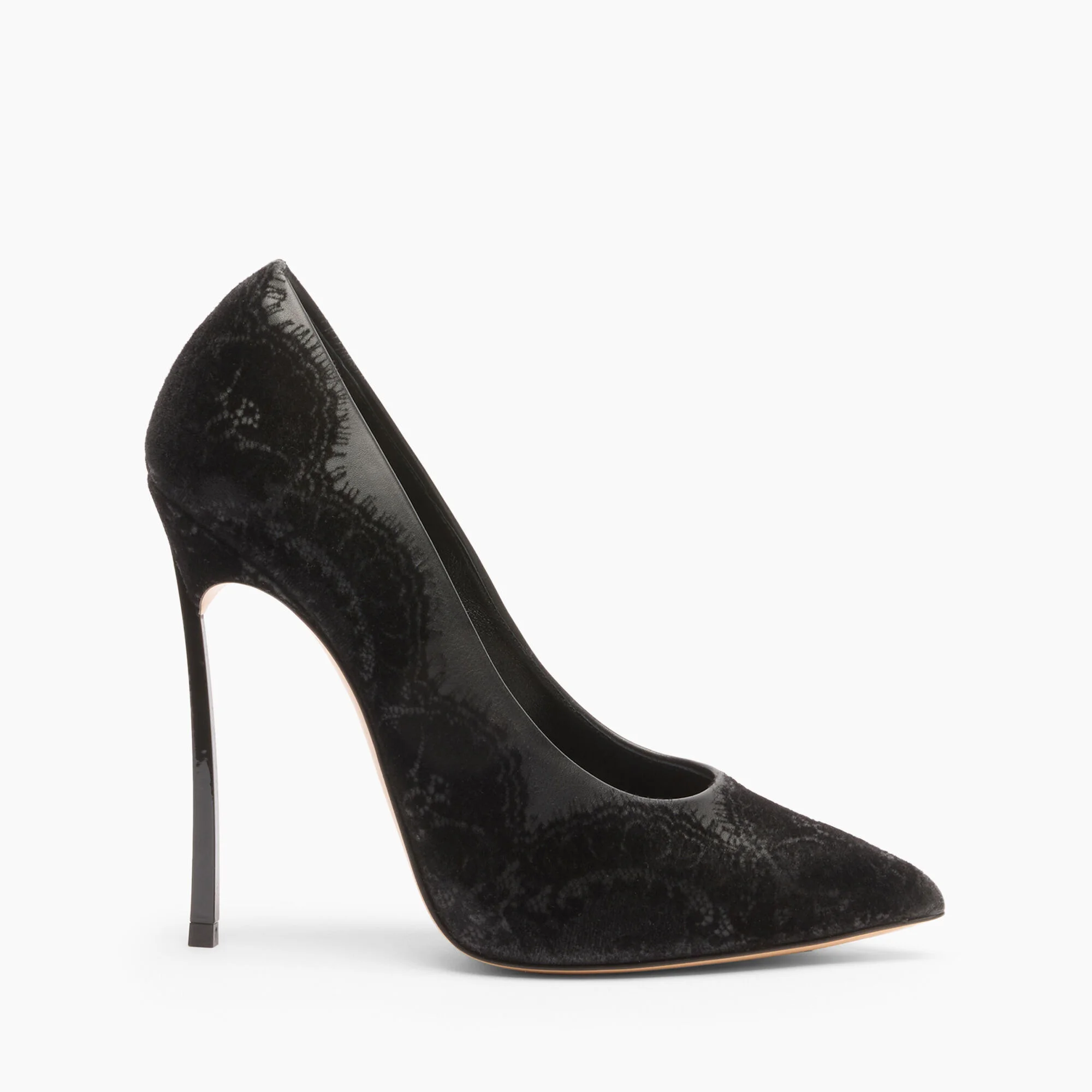 The Blade Lingerie is the shoe ready to steal the show. With a provocative and seductive spirit, Cesare Casadei designed this shoe for bold and feisty women. On the Maison's iconic decollete, you cannot miss the 12 cm Blade heel in black hardened steel that slims the figure. Details - Fabric and lace effect flocking - 60% Polyurethane and 40% Polyester (100% Polyester) - Blade heel in stainless steel 120 mm / 4.7 inches - 100% Made In Italy - Code: 1F024A120TLINGE9000
