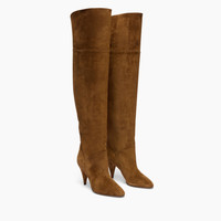 The it shoe of the season is the Corsair boot. Made of fine saddle suede, this over-the-knee boot is designed for daring and sophisticated women. The 8 cm ‘Venus’ cone heel, with direct reference to Casadei's 1982 model, gives an extra dose of grit and style. The real innovation of this boot is its versatility: the upper of the boot leg can be turned up, like the sleeve of a shirt. You can choose to leave it high for an elegant and refined look, or turn the cuff up for a more casual and dynamic effect. The Corsaro boot is the perfect choice for those who want an accessory that suits every occasion, without sacrificing style and originality. Details - Suede - 100% Calf - 100% Made In Italy - Code: 1T088A0801NOMAD2608