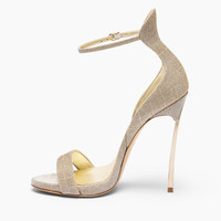 For the Fall/Winter 25-26 collection, Casadei presents the iconic Cappa Blade in platinum-colored lurex fabric. The detail of the lasers that reproduce ton sur ton geometric motifs makes this model unique. The iconic 12-cm steel Blade heel slims the figure, and the ankle strap not only adds a touch of elegance, but also ensures stability and a flawless fit with every step. Details - Fine-weave lurex fabric with laser engraving of tone-on-tone geometric motifs - 50% Polyurethane, 42% Polyester and 8% Cotton - Blade heel in stainless steel 125 mm / 4.9 inches - 100% Made In Italy - Code: 1LG50D125MTRINI1105