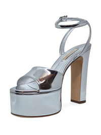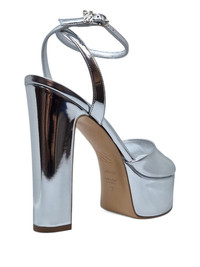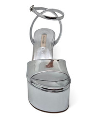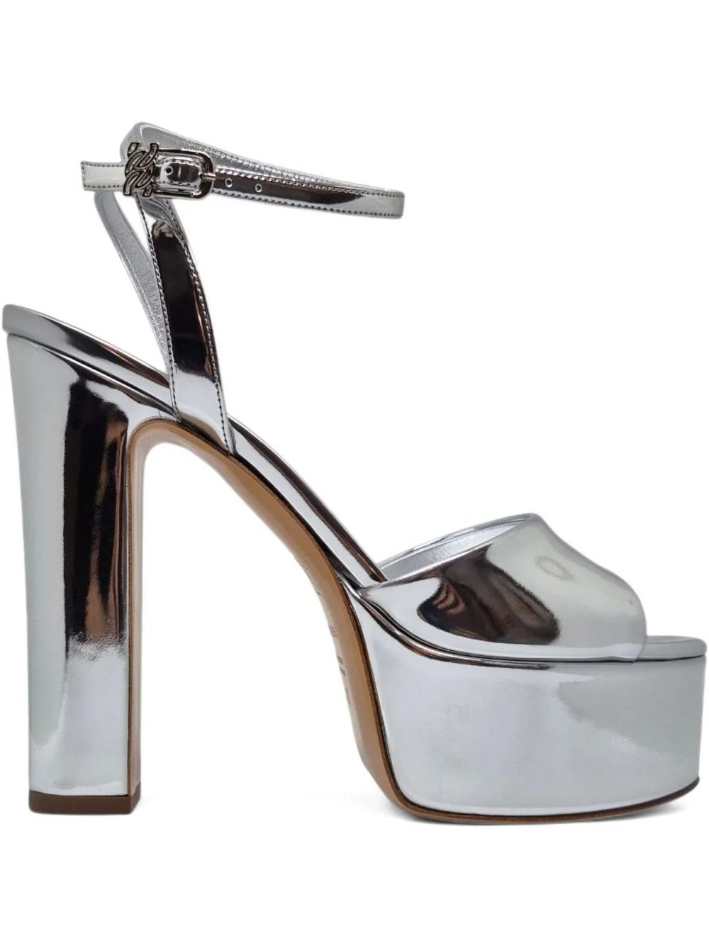 130mm Patty platform ankle-strap sandals Highlights - Silver-tone - Platform sole - High block heel - Ankle strap - Buckle fastening Made in Italy Composition Outer: Polyurethane 60%, Polyester 40% Lining: Calf Leather 100% Sole: Calf Leather 100% SIZE & FIT Measurement HEEL 5.11 in(13 cm)