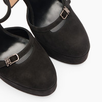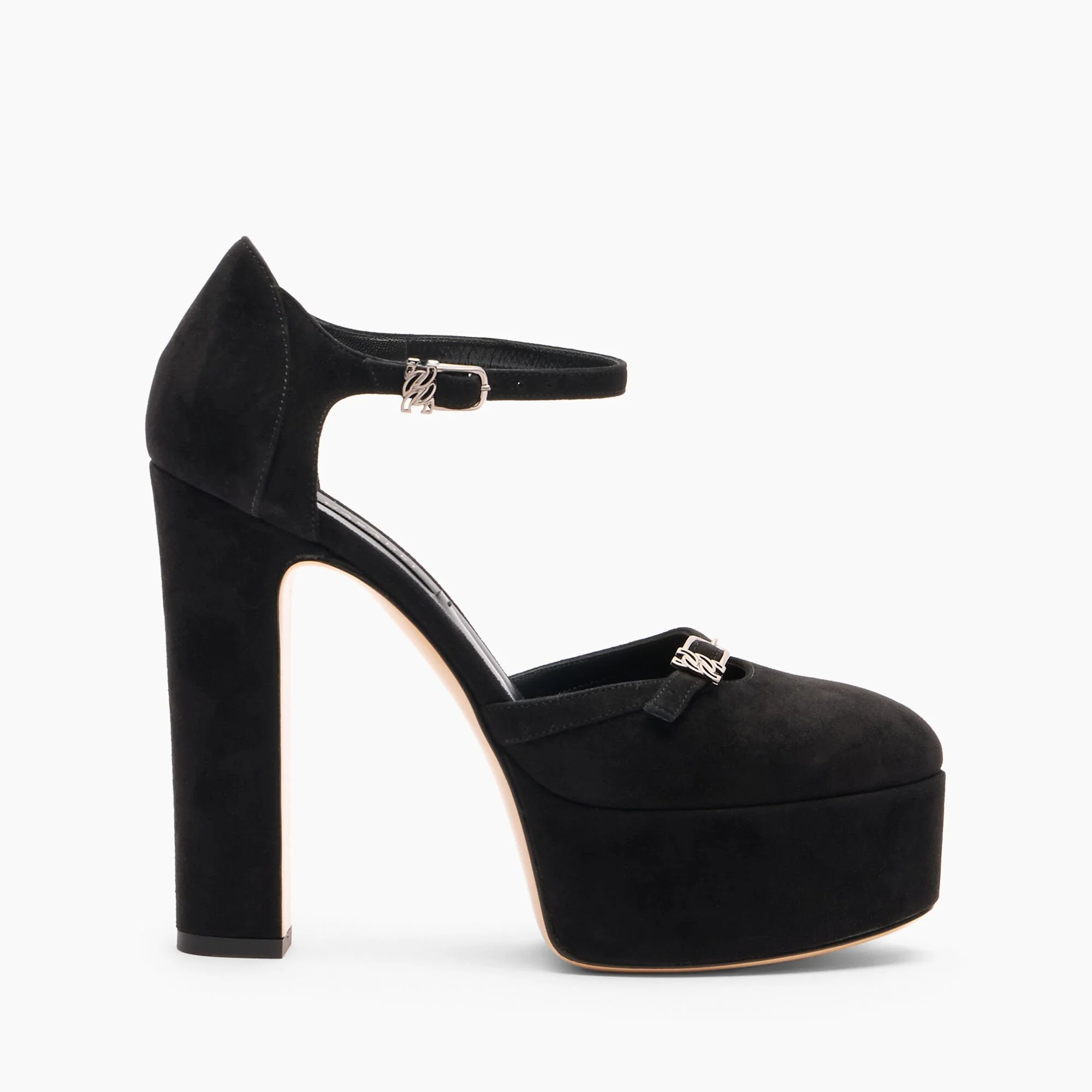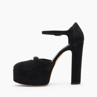 For lovers of heights, Casadei presents for this Fall/Winter 25-26 collection the new Patty plateau. Reminiscent of the 1970s, the 8cm quarry plateau addresses the theme of “beautiful and walkable” with style and grit. In reinassance-colored suede, one of this collection's signature colors, it features a chunky 13cm heel, which is balanced by the comfortable plateau that slims the figure. The small C-Chain buckle makes this model one of a kind. Details - Suede - 100% Kid - Leather covered heel 130 mm / 5.1 inches with plateau 30 mm / 1.18 inches - 100% Made In Italy - Code: 1H046A1301CAMOS9000