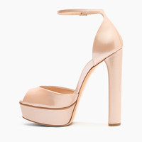 For those who love heights, Casadei presents its iconic Flora platform in samurai, a sand-colored patent leather that features a delicate metallization that can enhance the colors and shine of the model. This sandal, featuring a vertiginous chunky heel well balanced by a comfortable platform, secures at the ankle with a thin strap. It enhances the feminine silhouette, imparting sensuality and elegance. Details - Patent leather with soft metallic finish to highlight the colour and brilliance - 100% Calf - Patent leather covered heel 140 mm / 5.5 inches with plateau 40 mm / 1.5 inches - 100% Made In Italy - Code: 1L287Y1401SAMUR3203