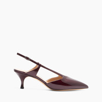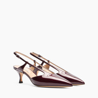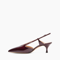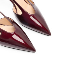 Discover the timeless elegance of the Julia slingback in samurai, a black cherry-colored patent leather that features delicate metallization to enhance its color and shine. This timeless model combines sophistication and practicality, adapting perfectly to any occasion. The 5 cm kitten heel ensures lasting comfort for all-day wear. A true must-have for every wardrobe. Details - Patent leather with soft metallic finish to highlight the colour and brilliance - 100% Calf - Patent leather covered heel 50 mm / 1.9 inches - 100% Made In Italy - Code: 1H035A0501SAMUR4408