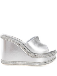80mm Jasmine wedges Highlights - Silver-tone - Slip-on style - Rhinestone embellishment - Logo at the sole Made in Italy Composition Sole: Rubber 100% Lining: Calf Leather 100% Outer: Calf Leather 100%