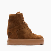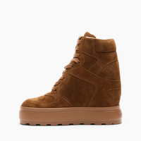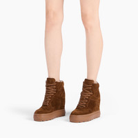 Comfortable lace-up sneaker made of burnt-colored suede calfskin that features a tank-rubber bottom that ensures grip and an internal wedge that provides stability and practicality. Ideal for urban style in cold winter days. Details - Suede calfskin leather - 100% calf - Rubber shoe bottom 80 mm / 3.1 inches - 100% Made In Italy - Code: 2X082A0801RENNA8500
