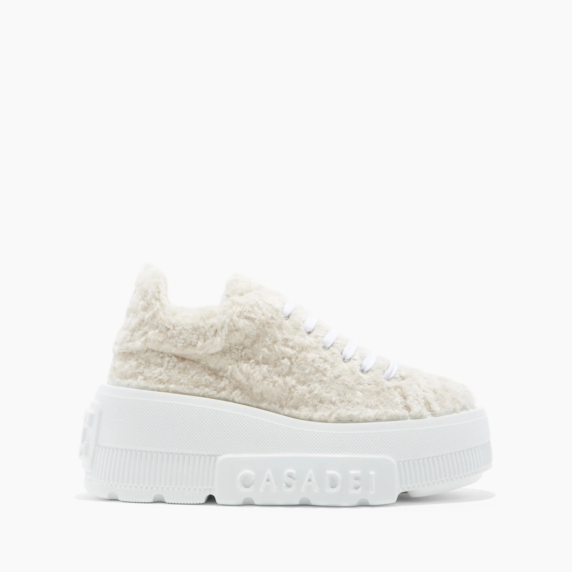 The key element that distinguishes Casadei is novelty. This year sees the presentation of the iconic Nexus sneakers in leather, lined with a semi-white sheepskin-effect faux fur. These are a creation with a techno-futuristic background and current aesthetic, making them must-haves for the season. The iconic C-Chain element, as well as the maxi-logo on the side, gives the brand’s flagship sneakers a distinctive look that is impossible not to recognise Details - Synthetic fur, lined with a semi-lambskin effect faux-fur - 100% Polyestere - 70-Mm/2.7-Inch Oversized Rubber Sole. - 100% Made In Italy - Code: 2X975W0701C21879999