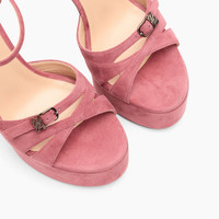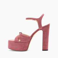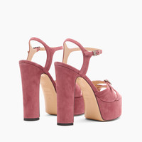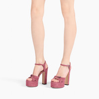 For lovers of heights, Casadei presents for this Fall/Winter 25-26 collection the new Patty plateau. Reminiscent of the 1970s, the 8cm hollow platform addresses the theme of “beautiful and walkable” with style and grit. In reinassance-colored suede, one of this collection's signature colors, it features a chunky 13cm heel, is balanced by the comfortable plateau that slims the figure. The small C-Chain buckle makes this model one of a kind. Details - Suede - 100% Kid - Leather covered heel 130 mm / 5.1 inches with plateau 30 mm / 1.18 inches - 100% Made In Italy - Code: 1L404A1301CAMOS4507