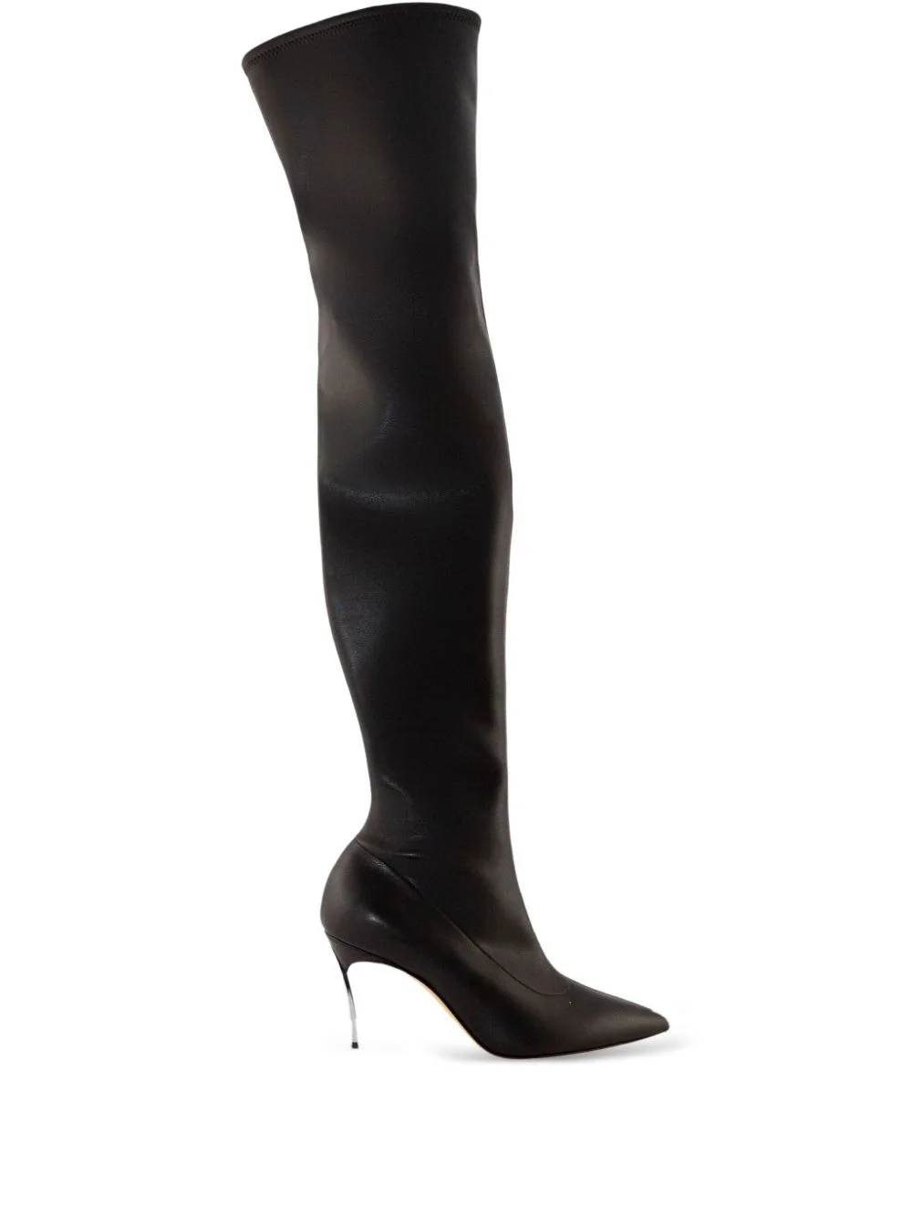 80mm pointed-toe stiletto boots Highlights - Black - Leather upper - Pointed toe - Stiletto heel - Over-the-knee shaft Made in Italy Composition Lining: Leather 100% Sole: Rubber 100%, Leather 100% Outer: Nappa Leather 100% SIZE & FIT Measurement HEEL 3.14 in(8 cm)