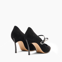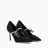A symbol of hyper feminine fashion, the Starsway pump in black suede is a treat for the eyes. The crystal strap detail is embellished with a small metal mesh with the Maison's iconic C-Chain logo. Its sleek and sophisticated silhouette is perfect for any special occasion, from the cocktail party to the most exclusive evening. With its impeccable combination of luxury and comfort, this pump is a true style statement. Its versatility makes it easy to pair with any look, while crystal details add a touch of sophistication and glamour that will not go unnoticed. The hardened, 8-cm Blade heel slims the figure. Details - Suede - 100% Kid - Blade heel in stainless steel 80 mm / 3.1 inches - 100% Made In Italy - Code: 1F016A080TT0526B048