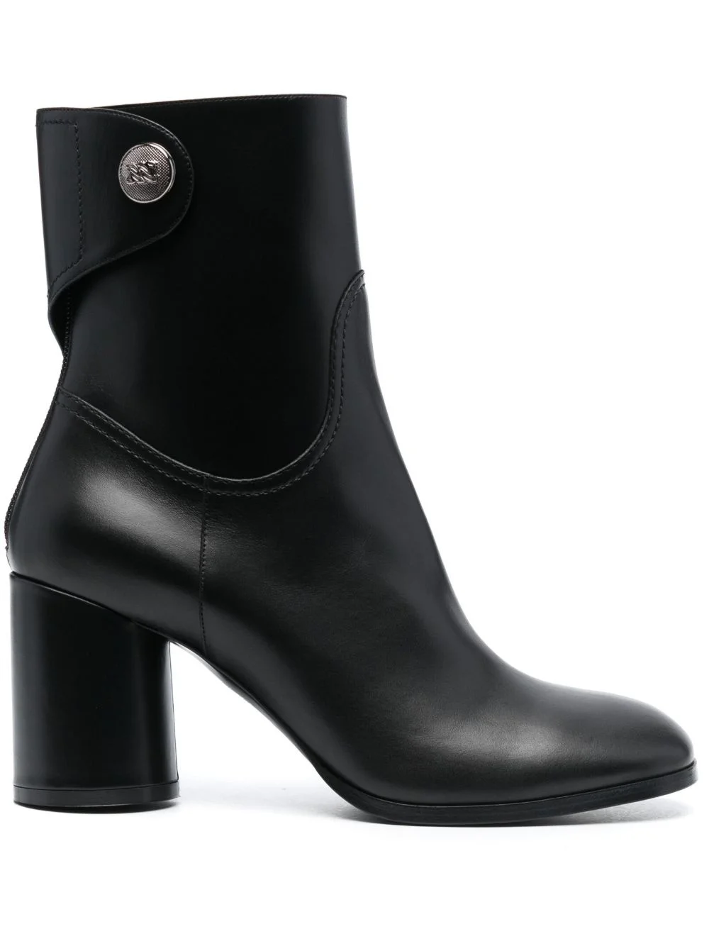 90mm block-heel leather boots Highlights - Black - Calf leather - Panelled design - Round toe - Button fastening - Branded insole - 90mm block heel - Leather sole - Ankle-length Made in Italy Composition Outer: Calf Leather 100% Sole: Calf Leather 100% Lining: Calf Leather 100% SIZE & FIT Measurement CIRCUMFERENCE 10.23 in(26 cm) HEEL 3.54 in(9 cm) HEIGHT 6.29 in(16 cm) Sole height 0.59 in(1.5 cm)