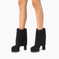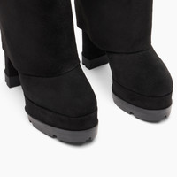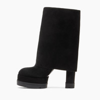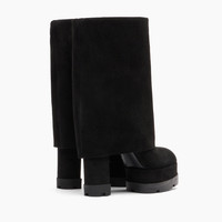 A must-have in the Autumn/Winter 24-25 collection is the beloved reversible Nancy boot in black suede, which gives the possibility to be worn with two different functions, thanks to the soft, turn-up upper. The vertiginous chunky heel is balanced by the addition of the platform to guarantee stability and practicality, while the tank-rubber sole ensures grip. Details - Suede Calfskin Leather - Suede Covered Heel. 120 Mm/4.7 Inches With 40 Mm/1.5 Inches Platform. - 100% Calf - 100% Made In Italy - Code: 1S246Z1201RENNA9000