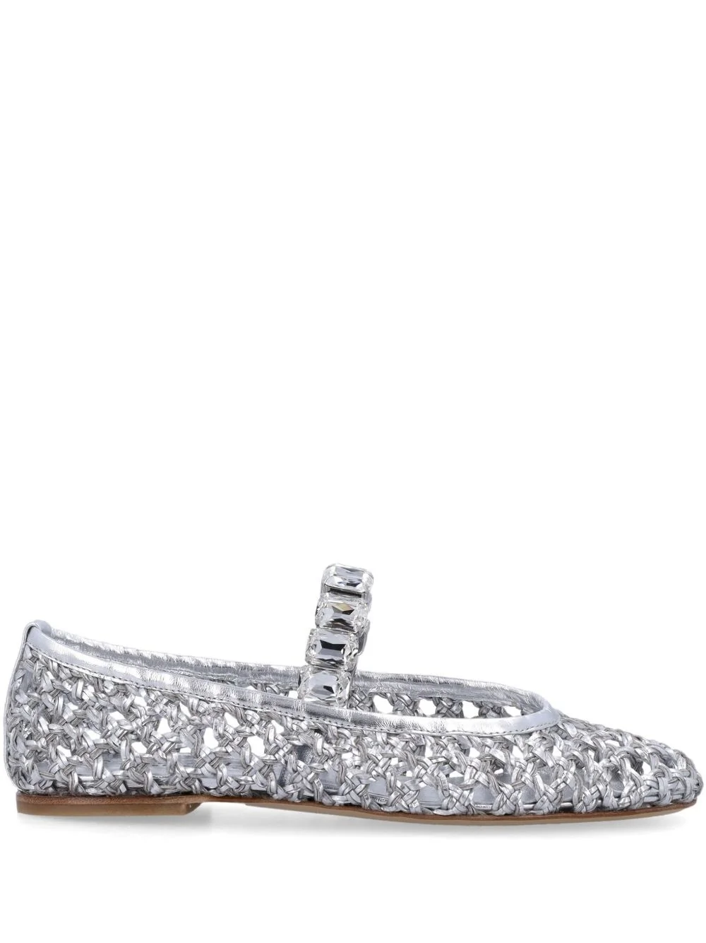 Versilia ballerina shoes Highlights - Silver-tone - Slip-on style - Crystal embellishment - Interwoven design - Metallic effect Made in Italy Composition Outer: Polyurethane 70%, Polyester 17%, Cotton 13% Lining: Fabric 100% Sole: Calf Leather 100%