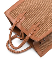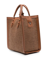 Baurivage woven tote bag caramel brown leather interwoven design logo patch to the front two top handles detachable shoulder strap internal zip-fastening pocket Made in Italy Composition Leather 100% SIZE & FIT Model measurements Height 5 ft 10 in(1.79 m) Bust/Chest 33.07 in(84 cm) Hips 35.82 in(91 cm) Waist 24.01 in(61 cm) Measurement DEPTH 5.7 in(14.5 cm) HANDLE 3.54 in(9 cm) HEIGHT 9.84 in(25 cm) STRAP 18.5 in(47 cm) WIDTH 9.64 in(24.5 cm)