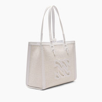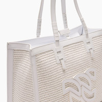 Casadei's Beaurivage tote bag in white-colored raffia and leather details. It features a leather handle and a removable shoulder strap. The C-Chain logo makes this model one of a kind. Perfect style companion for city life but also for the beach. Details - Braided raffia - 52% Cotton and 48% PolyamideHeight 27 cm - Width 35,5 cm - Depth 14 cm - Shoulder strap 75 cm - Code: 3W457J0000BEAUR9999