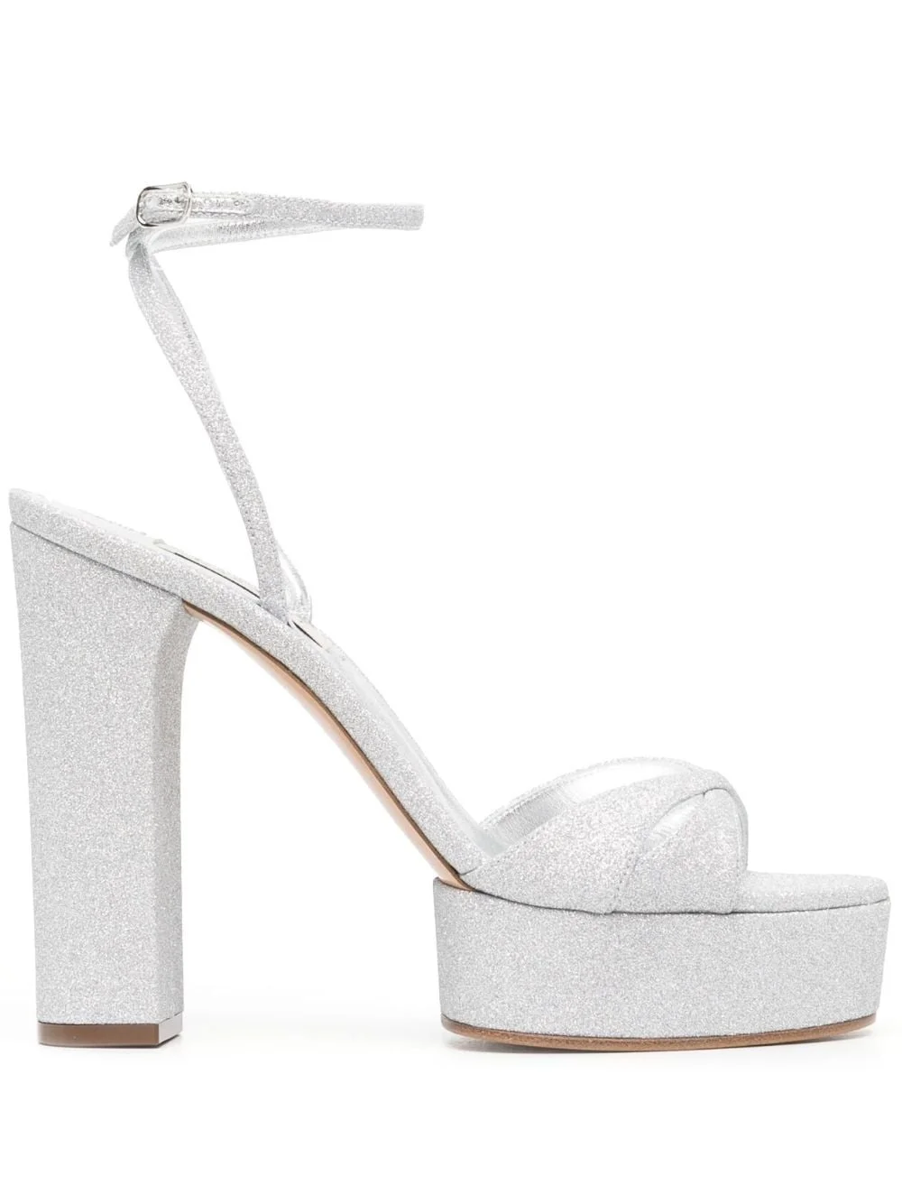 Betty Citylight 130mm platform sandals Highlights - Silver-tone - Calf leather - Glitter detailing - Crossover strap at the toe - Round toe - Open toe - Buckle-fastening ankle strap - Platform sole - 130mm high block heel Made in Italy Composition Outer: Polyester 100% Lining: Calf Leather 100% Sole: Calf Leather 100% SIZE & FIT Measurement HEEL 0.98 in(2.5 cm) Sole height 1.37 in(3.5 cm)