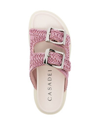 Birky Ale flatform slides Highlights - Pink/white - Metallic effect - Logo-engraved silver-tone hardware - Slip-on style - Open toe - Double buckle fastening - Branded moulded footbed - 40mm flatform sole Made in Italy Composition Other fibres 100% SIZE & FIT Measurement HEEL 2.16 in(5.5 cm) PLATFORM 1.57 in(4 cm) WIDTH 10.62 in(27 cm)