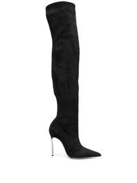 Blade 110mm thigh-high suede boots Highlights - Black - Calf leather/calf suede - Pointed toe - Thigh-high - Leather sole - 110mm signature blade heel Made in Italy Composition Outer: Calf Suede 100% Lining: Calf Leather 100% Sole: Calf Leather 100% SIZE & FIT Measurement CIRCUMFERENCE 16.14 in(41 cm) HEEL 4.33 in(11 cm) HEIGHT 24.8 in(63 cm)