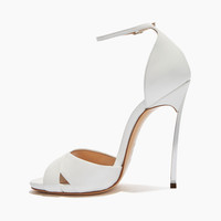 These white nappa leather Blade sandals with criss-cross design are the perfect sandals for any occasion thanks to their delicate and versatile hue, while the thin ankle strap ensures the fit. This iconic style from Casadei with a contemporary design stands out with its stainless steel Blade stiletto heel, giving it grit and elegantly slimming the female figure. Details - Nappa leather - Stainless Steel Blade Heel. 115 Mm/4.5 Inches With A 10-Mm/0.4-Inch Concealed Platform - 100% Made In Italy - Code: 1L556P120MAMINO9999