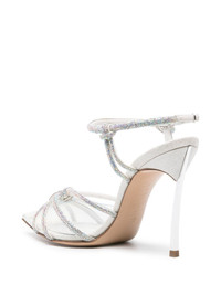 Blade C+C 100mm rhinestone-embellished pumps Highlights - White - Glitter detailing - Rhinestone embellishment - Knot detailing - Multi-way strap design - Transparent pointed toe - Buckle-fastening ankle strap - Branded footbed - 100mm signature blade heel Made in Italy Composition Other fibres 100% SIZE & FIT Measurement HEEL 4.33 in(11 cm) Sole height 0.39 in(1 cm)
