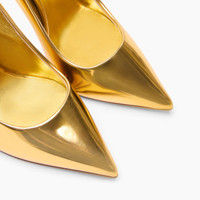Casadei's decollete, with its timeless silhouette and on the iconic 12 cm steel Blade heel, is distinguished by this mirror-effect fabric on a gold-colored metallic background, which lends strength and character to the style. Accessory that cannot miss in one's wardrobe, to shine at its best on summer evenings. Details - Mirror effect fabric - 40% Polyester and 60% Polyurethane - Blade Heel In Stainless Steel. 120 Mm/4.7 Inches. - 100% Made In Italy - Code: 1F916W120MINTER1301