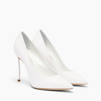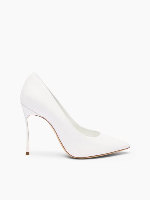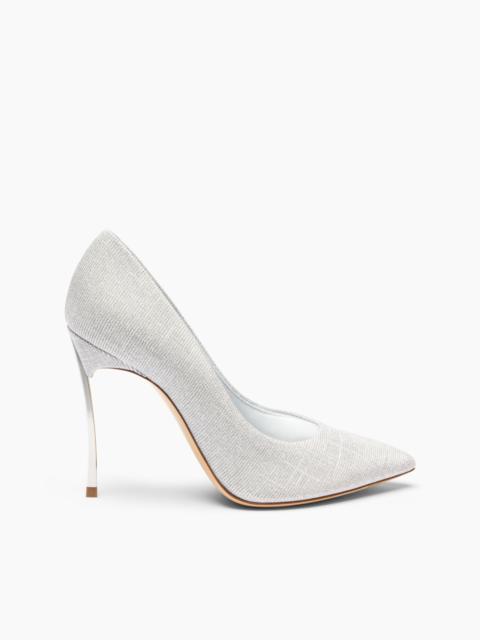 Casadei presents its iconic model, the decollete on a 10-cm steel Blade heel. Made of white lurex fabric, this creation catches the light with refined intensity, giving a bright and sophisticated allure. Perfect for completing elegant looks, it is designed to accompany even the most special occasions with style. Details - Fine-weave lurex fabric with laser engraving of tone-on-tone geometric motifs - 50% Polyurethane, 42% Polyester and 8% Cotton - Blade heel in stainless steel 100 mm / 3.9 inches - 100% Made In Italy - Code: 1F915W100MTRINI9998