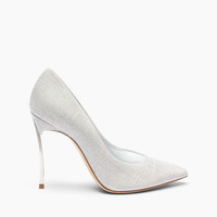 Casadei presents its iconic model, the decollete on a 10-cm steel Blade heel. Made of silver-colored lurex fabric, this creation catches the light with refined intensity, giving a luminous and sophisticated allure. Perfect for completing elegant looks, it is designed to accompany even the most special occasions with style. Details - Fine-weave lurex fabric with laser engraving of tone-on-tone geometric motifs - 50% Polyurethane, 42% Polyester and 8% Cotton - Blade heel in stainless steel 100 mm / 3.9 inches - 100% Made In Italy - Code: 1F915W100MTRINI9701
