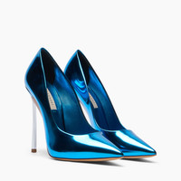 The Casadei decollete, with its timeless silhouette and iconic 12 cm steel Blade heel, stands out for its mirror-effect fabric on a smurf-coloured metallic background, which gives strength and character to the style. An essential accessory for your wardrobe, to shine at your best on summer evenings. Perfect for elegant evenings, exclusive events, or red-carpet looks, it’s the ideal shoe for those who want to shine and stand out with style. Details - Mirror-effect fabric on metallic backing - 40% Polyester and 60% Polyurethane - Blade Heel In Stainless Steel. 120 Mm/ 4.7 Inches. - 100% Made in Italy - Code: 1F916W120MINTER5411