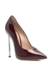 100mm metallic-heel pointed-toe pumps Highlights - Burgundy - Leather - Pointed toe - Stiletto heel - Metallic heel detail Made in Italy Composition Outer: Patent Calf Leather 100% Lining: Calf Leather 100% Sole: Calf Leather 100% SIZE & FIT Measurement HEEL 3.93 in(10 cm)