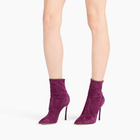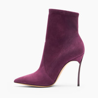 Striking the perfect balance between femininity and design, the black cherry suede ankle boot on the iconic 10cm hardened Blade heel is the perfect luxury accessory for an urban chic style with a gritty spirit. Details - Suede - 100% Kid - Blade heel in stainless steel 100 mm / 3.9 inches - 100% Made In Italy - Code: 1R672H100TT00054408