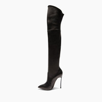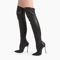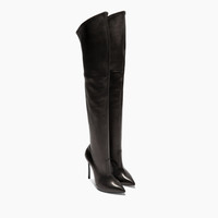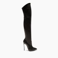The refined elegance of the black over-the-knee boot in supple nappa is gracefully highlighted by the remarkable Blade heel, making the woman’s silhouette ever more flattering. Details - Nappa Leather - 10% Elastan and 90% Kid Leather - Blade Heel In Stainless Steel. 115 Mm / 4.5 Inches With A 10 Mm / 0.4 Inches Concealed Platform - 100% Made In Italy - Code: 1T000D125TT02389000