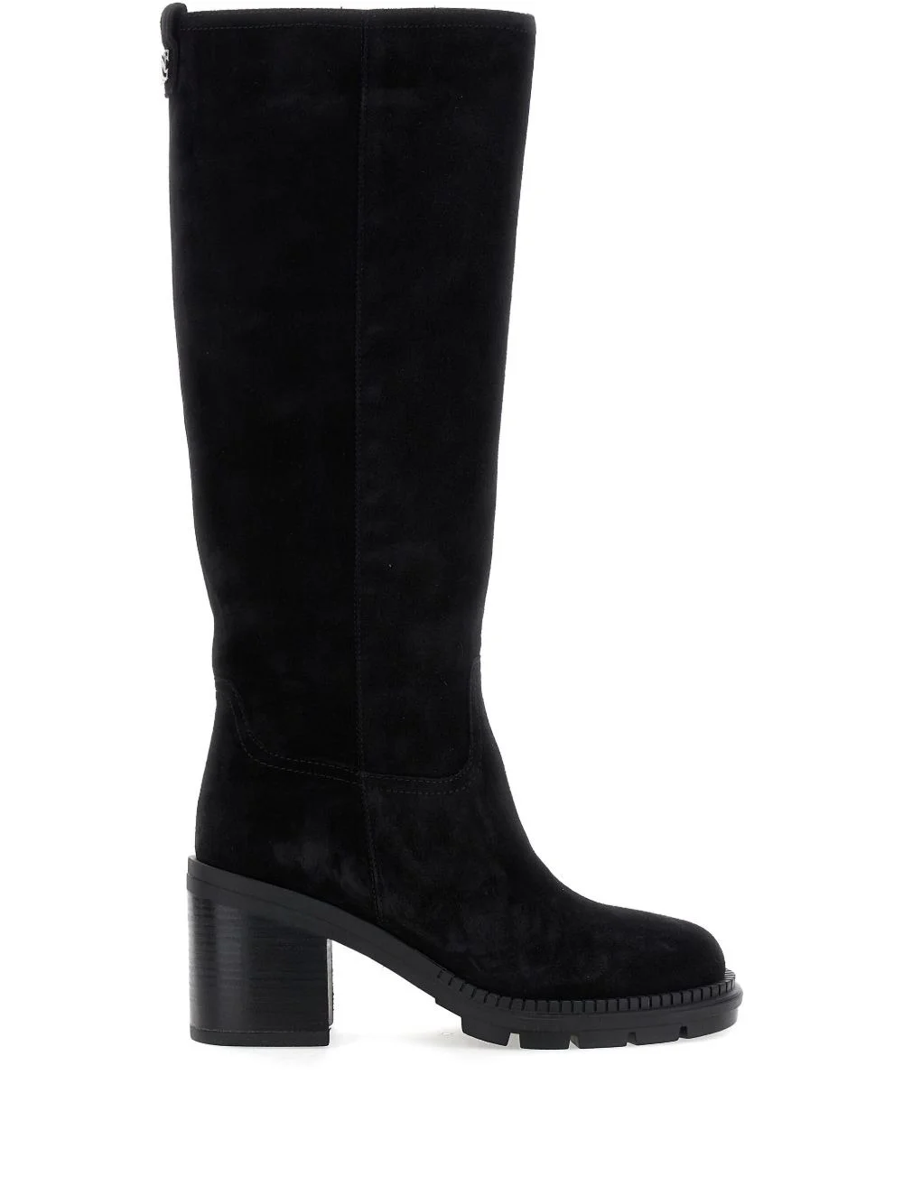 block-heel suede boots Highlights - Black - Suede - Block heel - Side zip fastening - Decorative back tab - Lug sole Made in Italy Composition Sole: Rubber 100% Lining: Calf Leather 100% Outer: Calf Leather 100%