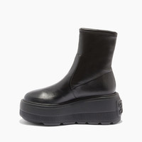 At dawn of an epochal revolution, Nexus, a postmodern techno-futuristic project defined “eternal modern”, was born. An ultra light wedge shows a timeless, always modern look, placed on an ankle boot in cozy and soft stretch vegan nappa leather. Low-life meets high-tech in a capsule dedicated to Casadei’s “replicants.” Details - Cozy and soft stretch vegan nappa - 50% Polyethylene and 50% Polyurethane - Ultra-Light Wedge With The Casadei Logo On The Outside And C-Chain Logo Underneath The Sole 70 Mm / 2.7 Inches - 100% Made In Italy - Code: 2Q160T070NLABBB9000