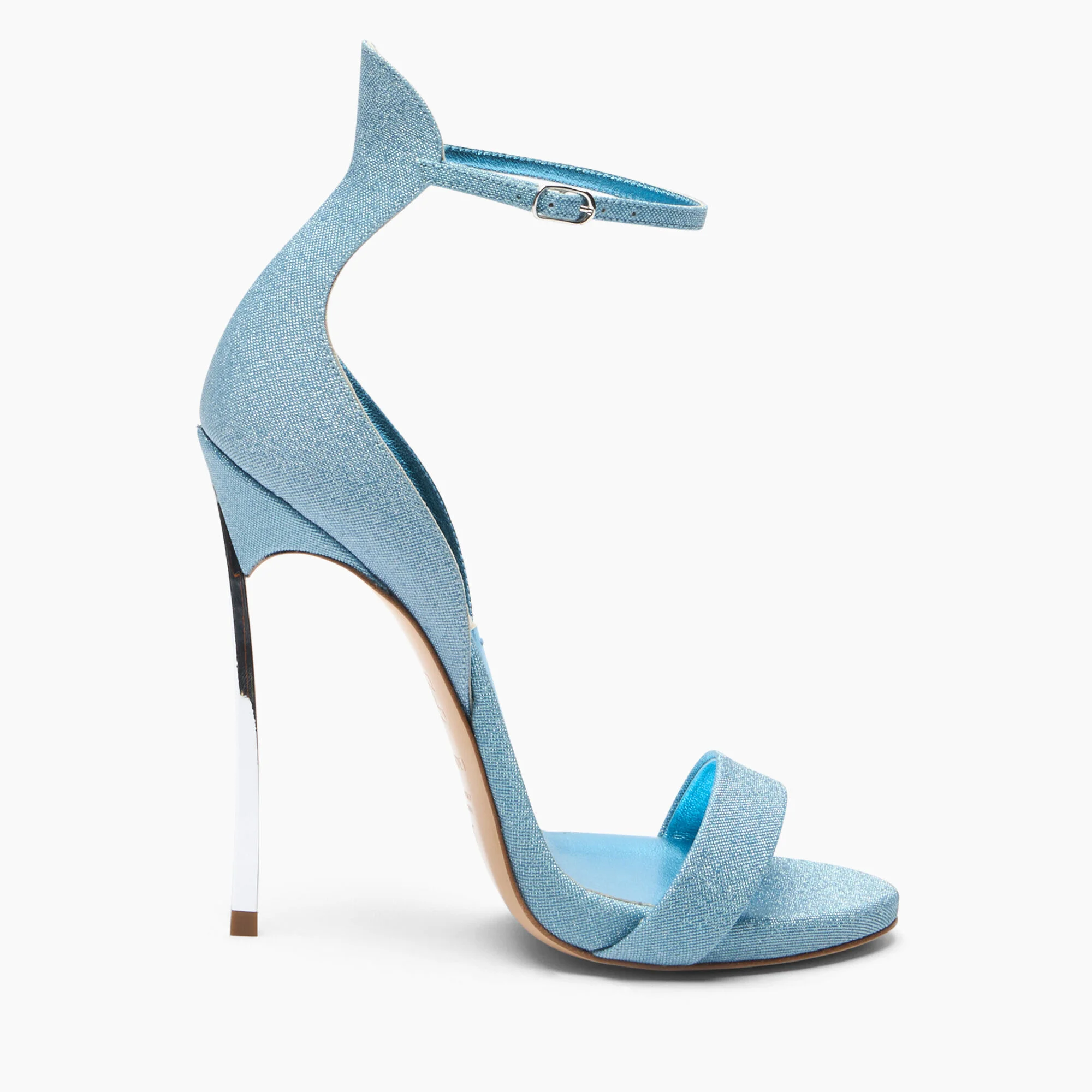 Casadei reinterprets the iconic Blade Cape in a refined version in skybell glitter fabric. The 12 cm steel Blade heel sculpts the silhouette with elegance and character, while the ankle strap adds a sophisticated detail, ensuring stability and a flawless fit. A model designed to catch the eye and accompany you with style every step of the way. Perfect for special events, summer evenings, or polished daily looks, they combine elegance and character on every occasion. Details - Ultrafine-grain glitter with micro-diamond overprint - 38% Polyamide, 32% Polyurethane and 30% Thermoplastic polyurethane - Ultra-Light Wedge With The Casadei Logo On The Outside And C-Chain Logo Underneath The Sole In 70 Mm / 2.7 Inches - 100% Made in Italy - Code: 1LG50D125MC26265315