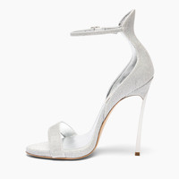 For the Fall/Winter 25-26 collection, Casadei presents the iconic Cappa Blade in silver-colored lurex fabric. The detail of the lasers that reproduce ton sur ton geometric motifs makes this model unique. The iconic 12-cm steel Blade heel slims the figure, and the ankle strap not only adds a touch of elegance, but also ensures stability and a flawless fit with every step. Details - Fine-weave lurex fabric with laser engraving of tone-on-tone geometric motifs - 50% Polyurethane, 42% Polyester and 8% Cotton - Blade heel in stainless steel 125 mm / 4.9 inches - 100% Made In Italy - Code: 1LG50D125MTRINI9701