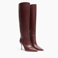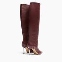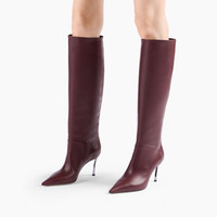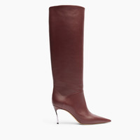 For the rockier souls, Casadei offers the knee-high Blade boot. In soft black cherry leather, one of this season's top colors, and with a sharp toe, this boot gives a sleek, ultra-feminine effect thanks to the iconic steel Blade heel. Details - Soft semi-shiny nappa calf leather with small grain - 100% Calf - Blade heel in stainless steel 80 mm / 3.1 inches - 100% Made In Italy - Code: 1S331Y080MC22454408