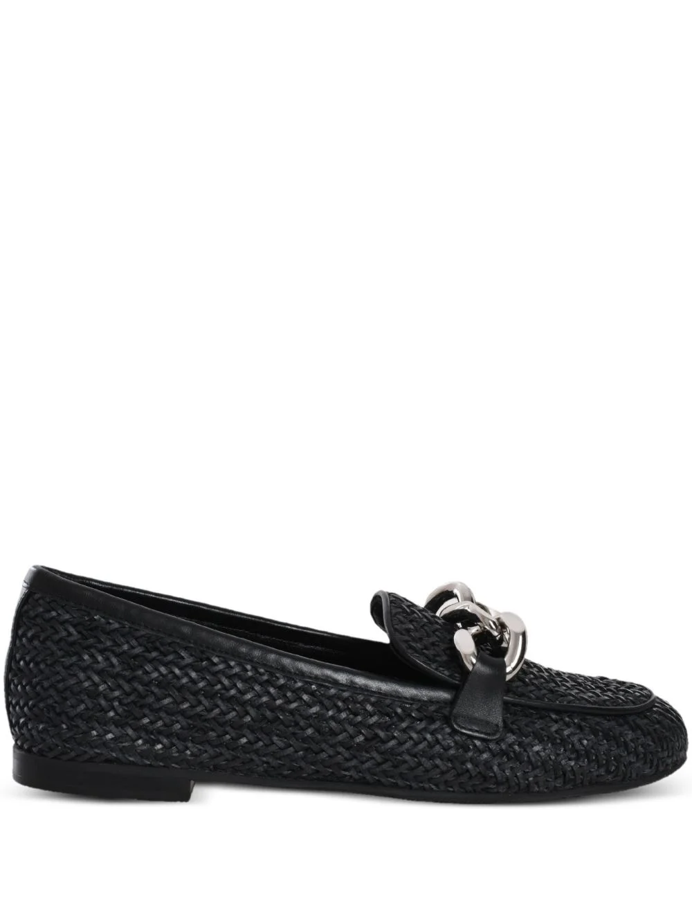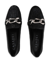 chain-link detail loafers Highlights - Black - Flat leather sole - Low block heel - Branded leather insole Made in Italy Composition Sole: Calf Leather 100% Outer: Kid Leather 100% Lining: Calf Leather 100%
