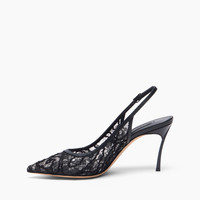 An icon of refinement that blends sensuality and craftsmanship. Casadei's Chantilly slingback is made of black lace with cornely detailing, which creates sinuous ribbing on the upper, creating a textured and sophisticated effect, perfect for ceremonies and special events. The tapered silhouette is enhanced by the 8 cm Blade heel, a distinctive feature of the Maison, which adds momentum and a contemporary touch to the timeless elegance of the model. The sharp toe and clean lines define a modern elegance, designed for women who want to stand out with grace and personality. Crafted from delicate Chantilly lace, they are the perfect choice for ceremonies and formal occasions, where refinement and femininity meet in perfect balance. Details - Chantilly lace - 80% Polyurethane and 20% Polyester - Leather Bottom - 100% Made in Italy - Code: 1G680B080TT05779000