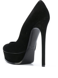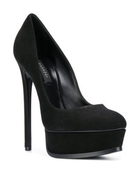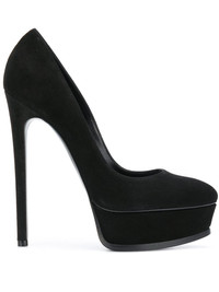 classic platform pumps With over 50 years of experience in the footwear industry, Casadei creates emblematic shoes that cross the ages without ever going out of style. Expertly crafted in Italy from black chamois leather, leather and nappa leather, these classic platform pumps from Casadei feature a pointed toe, a branded insole, a platform sole and a high heel. Made in Italy Composition Outer: Chamois Leather 100% Sole: Calf Leather 100% Lining: Nappa Leather 100% SIZE & FIT Measurement Sole height 1.37 in(3.5 cm) HEEL 5.7 in(14.5 cm)