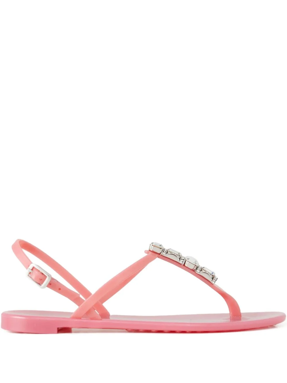 crystal-embellished thong-strap sandals Highlights - Pink - Crystal embellishment - Thong strap - Buckle fastening - Flat rubber sole Made in Italy Composition Sole: Rubber 100% Outer: Rubber 50%, Crystal 50% Lining: Rubber 100%